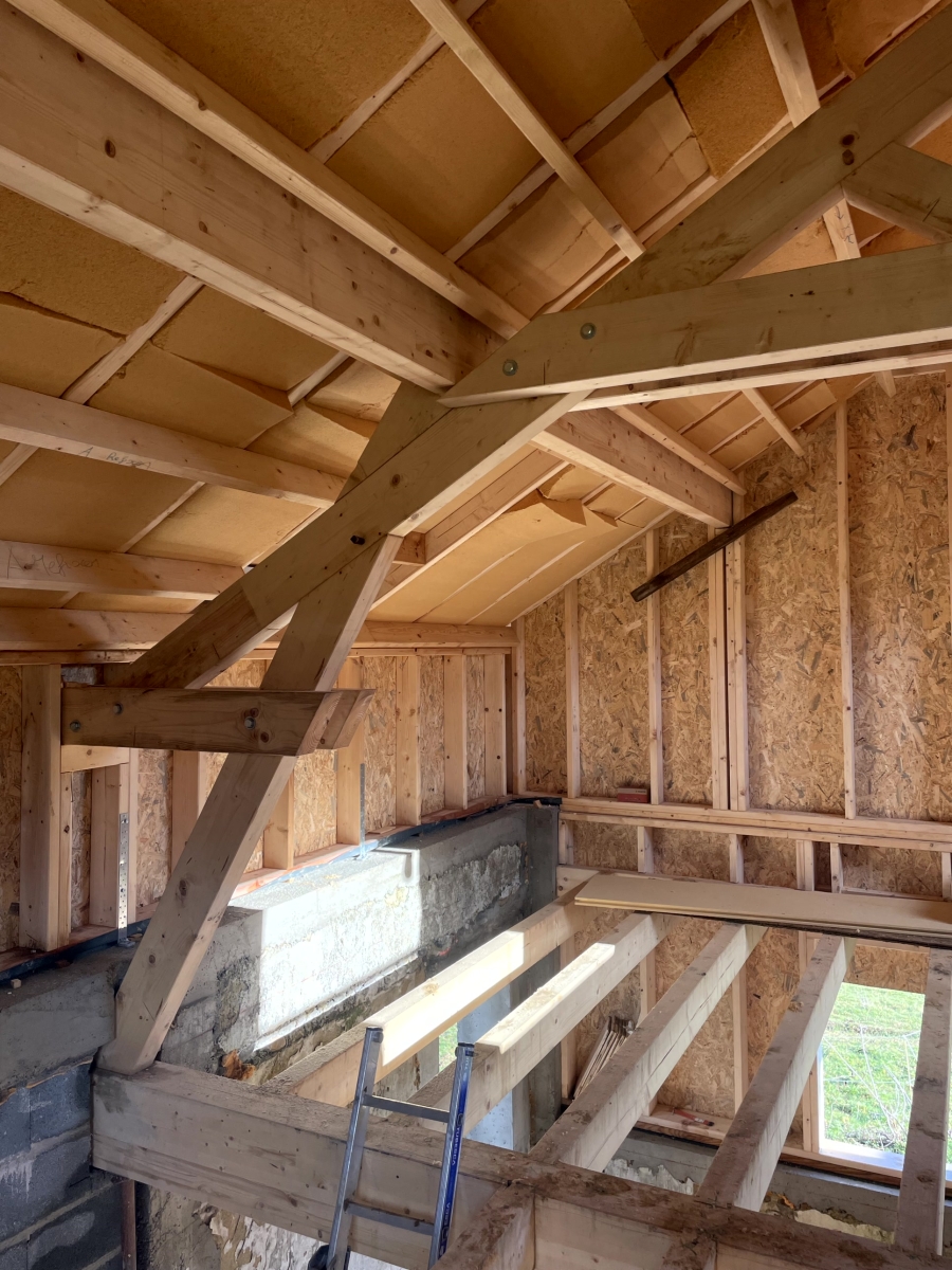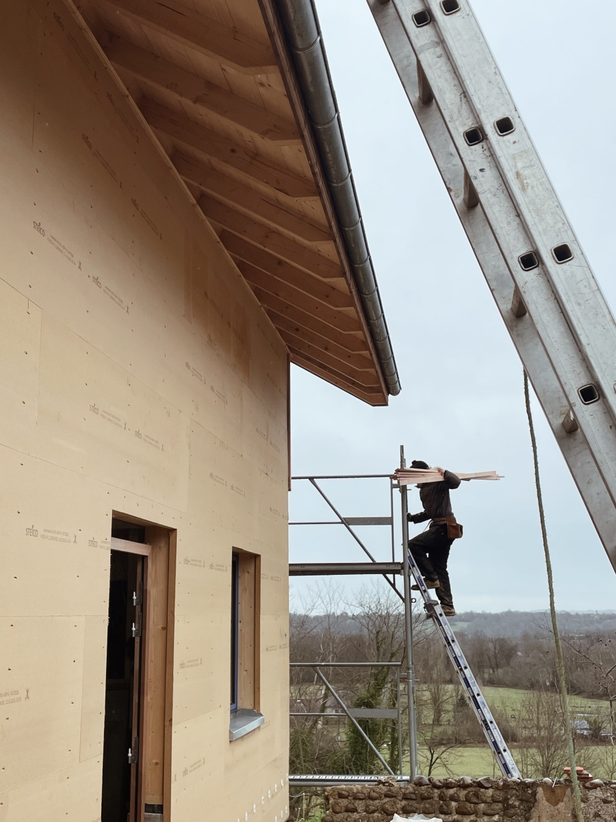 Les solutions adoptées répondent à des enjeux écologiques : chauffage au poêle à bois, production d’électricité par panneaux photovoltaïques. L’architecture, sobre et respectueuse des traditions, privilégie une toiture à deux pentes pour une harmonie visuelle. Ce projet conjugue préservation patrimoniale, durabilité et simplicité, dans le but de concevoir et bâtir un habitat frugal et contemporain.