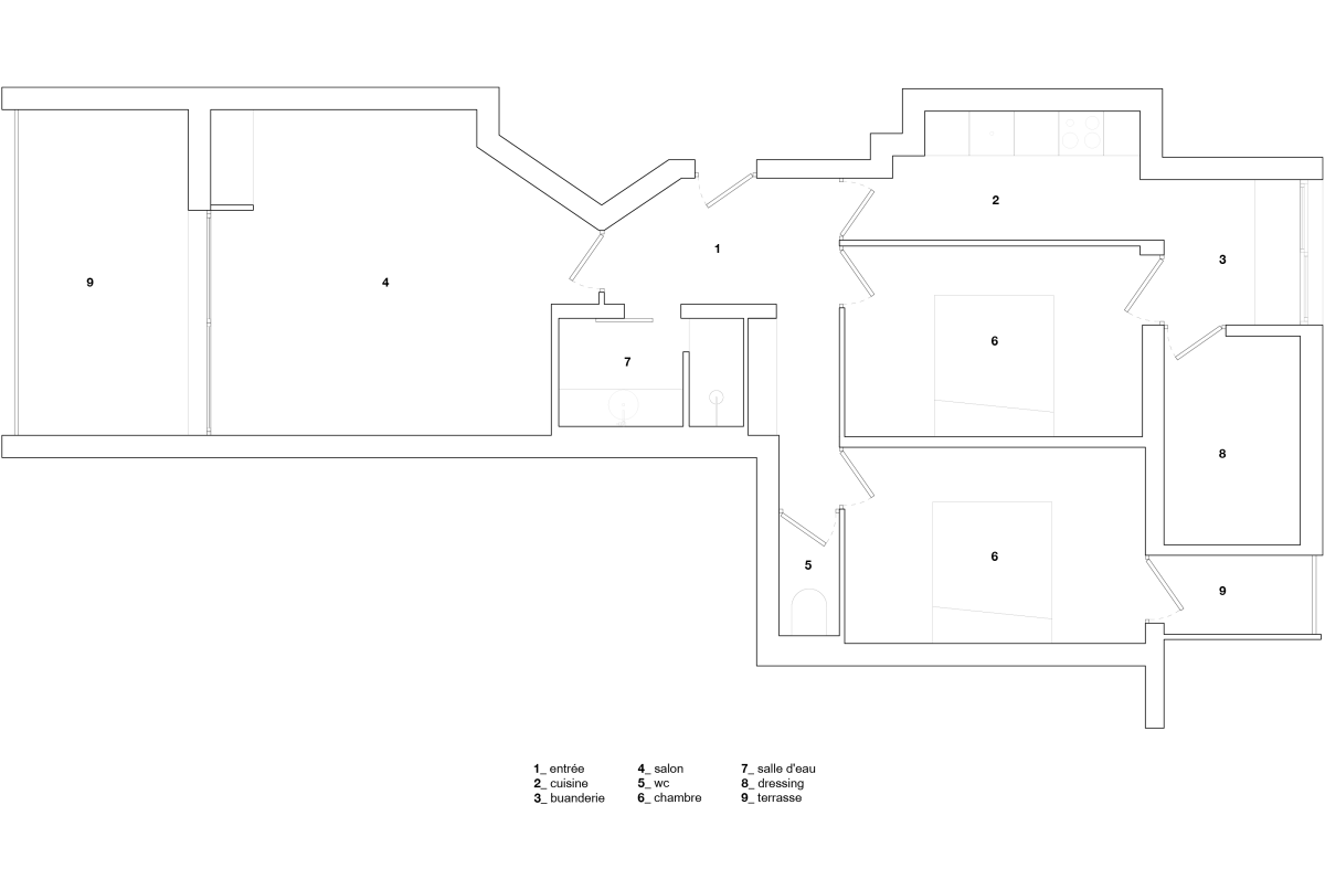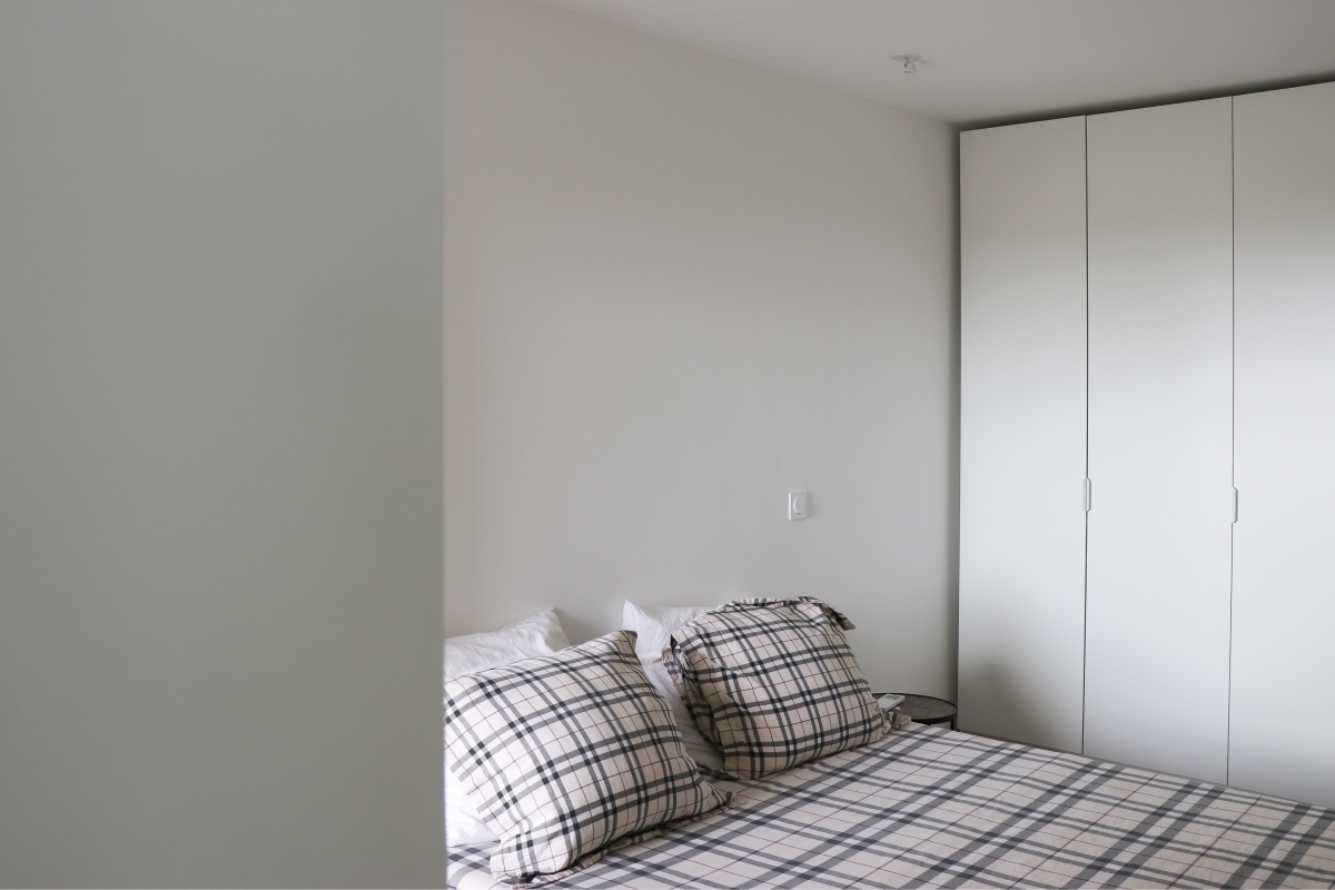 Résidence secondaire en bord de mer, cet appartement a été repensé au travers de sa spatialité. Les espaces de jour s'ouvrent alors sur la terrasse protégée et bénéficient pleinement de la lumière matinale tandis que les espaces de nuit se concentrent sur l'arrière de l'appartement. Le projet s'inscrit dans une matérialité qui se veut sobre et minimaliste.